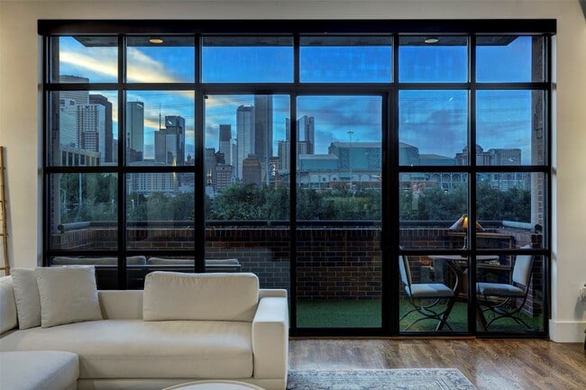 Well appointed 1 bedroom/1 bath mid-rise,EaDo condo with Northwest views of Downtown Houston. Computer/office nook in the primary suite. Assigned covered parking - 2 spots included (ground floor). Community swimming poo and putting greenl. Walking distance to Shell Energy Stadium,Daikin Park,Theaters,popular restaurants and bars and shops. Metro Rail across the street takes you to central Downtown,Theater District,Medical Center,Museum District and NRG Stadium. Monthly rent includes water,trash and sewer. MLS# 52101998