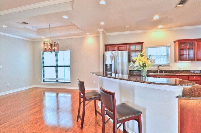 Gorgeous 3 bedrooms / 3.5 bah home ideally located in the heart of Rice Military close to Memorial Park and Buffalo Bayou. It features wood floor and beautifully updated baths. The 1st floor offers a spacious bedroom with a full bath also could be used as an office and gym. The thoughtful open layout on 2nd floor features living, kitchen, and dining space, big windows bring in lots of nature light, perfect for entertaining……The kitchen features a center gourmet island with beautiful cherry cabinets and granite countertops. Refrigerator included. The 3rd floor huge primary bed suit with a big closet features a jacuzzi tub, walk-in shower, and double vanities. The Secondary bedroom with its en-suite bathroom. This beautiful home also offers the private driveway for additional parking. Fenced front and backyard. Conveniently located just minutes from the Galleria, downtown and the Heights.