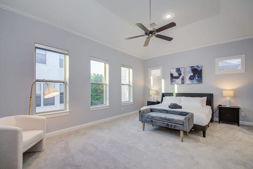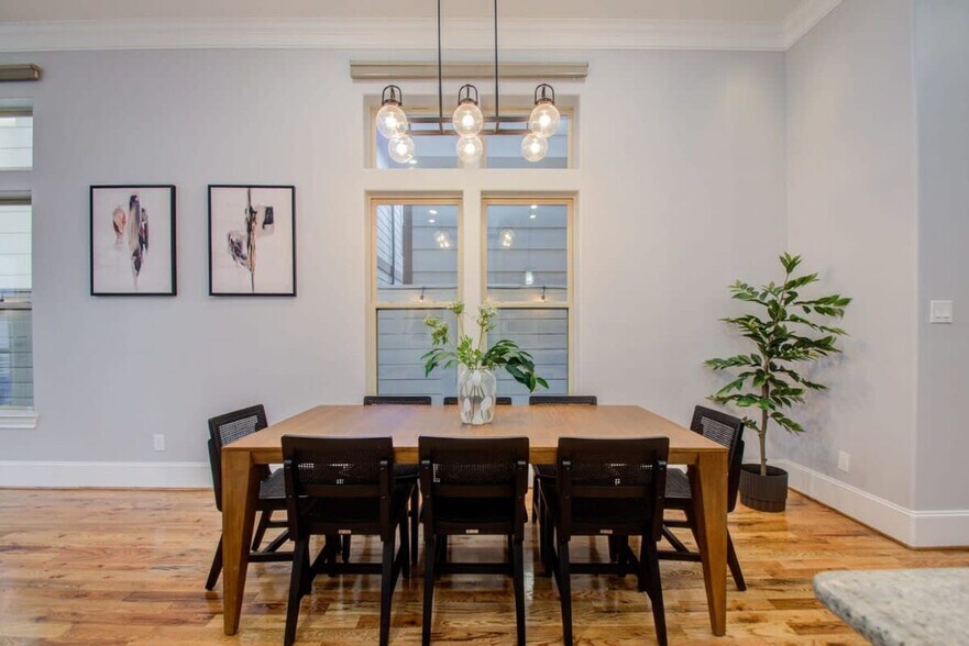 Feel at home in this centrally located Houston home, just minutes from Memorial Park, Downtown, and the Energy Corridor. This 4-bedroom home with 3.5 bathrooms has all the bells and whistles. This home features 12’ ceilings and rich oak hardwood flooring for a spacious, luxurious feel. The fully equipped kitchen includes stainless steel appliances such as a fridge, freezer, stove, oven, dishwasher, and microwave. The oversized kitchen island features bar seating. The dining area has a dining table with seat settings for 8, place settings and dining utensils, and a wine cooler and bar area. The living room has an open-concept layout, couches, coffee tables, a designer rug, a flat-screen TV, high-speed Wi-Fi, and glass patio doors with direct access to the backyard. The spa-like en-suite bathroom has a bathtub and glass walk-in shower. Essential toiletries are included, such as toilet paper and towels. Free parking is available in the two-car garage and on the driveway. House-trained pets are welcome with a non-refundable pet fee of $150 per pet, with a maximum of 2 pets per stay. Located in the much-desired neighborhood of Cottage Grove, you get all the perks of a luxury home while conveniently located to many of Houston’s highlights. Nearby attractions include The Houston Museum of Natural Science, Minute Maid Park, and exciting neighborhoods such as Midtown, Washington Avenue, and Montrose. Smoking of any type is not allowed and violations are subject to a $450 fine plus the cost to clean, deodorize, and repair damages. No parties or large unauthorized gatherings of any sort are allowed. No street parking is allowed due to City Parking Regulations. The maximum number of cars allowed are 2 cars in the garage and 2 cars in the driveway. Check-in is at 4pm and check-out is at 10am. The nightly rate includes the first six guests, and with each additional guest, a $29/night fee will be applied. In order to comply with local noise ordinances and occupancy regulations, and prevent unauthorized parties, a noise alert device has been installed in this home. The device does not record nor store sound data, and only functions to measure decibels and send alerts in case reasonable noise levels are exceeded. Work stations with desks, chairs, and lighting are available. Registration Number: STR-2025-000452 [SI]
