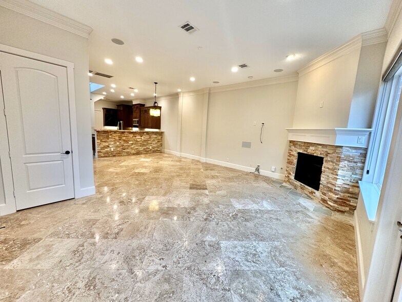 First floor living space with gas fireplace and surround sound. Great for entertaining.