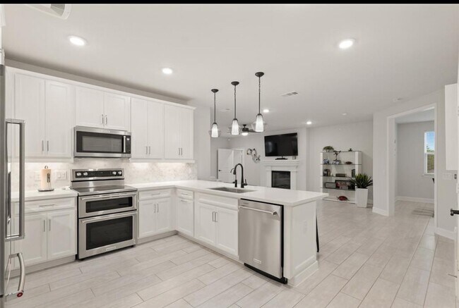 TRENDY MIDRISE COMMUNITY for ages 55 & older. This Beazer Condominium boasts an elegant floor plan,wood-like tile flooring,cast stone fireplace,& a private balcony overlooking the fountain/lake. Located on the third floor,a meticulously kept 3 bedroom,2 bathroom with front door code access. Including an additionally purchased extended garage & storage unit. The condo boasts natural light throughout the elegant,spacious kitchen equipped with quartz countertops,stainless steel appliances,pendant lighting,& undercabinet lighting. The beautiful primary bedroom retreat features En-suite bath & shower,dual vanities,& walk-in closet. This gated community is just minutes from Houston's best dining,parks,entertainment,& shopping-including The Galleria & City Centre. Residents also get to enjoy the community amenities including game room,grilling pavilion area,fitness center,scenic lake,dog park,putting green & more. Washer/Dryer/Refrigerator/Custom Window Coverings INCLUDED. MLS# 7652149