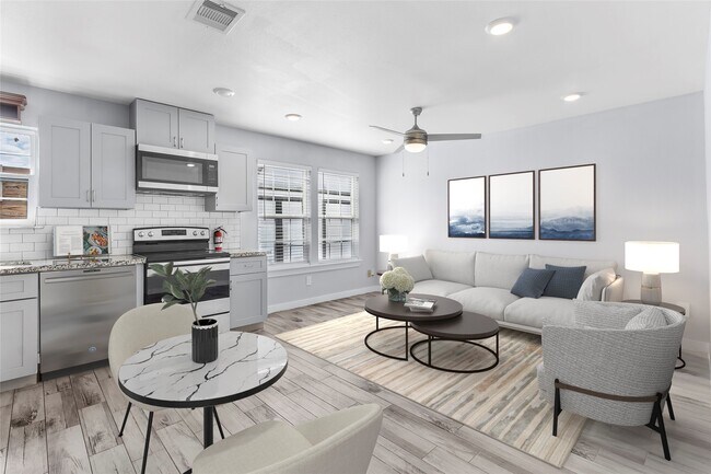 Enjoy modern comfort in this stylish two story,3 bedroom,2 bathroom home thoughtfully designed for easy living and entertaining. The open concept layout features tile/laminate flooring throughout (no carpet anywhere),granite countertops,and stainless steel appliances,with ALL appliances included - refrigerator,washer,and dryer. Covered parking doubles as a shaded front patio,perfect for relaxing or grilling with the included outdoor grill. Ideally located within 15 miles of The Galleria,Downtown Houston,the Texas Medical Center,University of Houston–Downtown,and The Heights,this home delivers the perfect blend of convenience,comfort,and contemporary style. MLS# 62172649