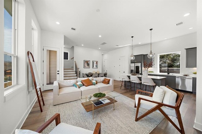 This stunning 3-bedroom, 3.5-bathroom home combines modern design with timeless comfort and abundant natural light throughout. NO CARPET in common areas or stairs for easy maintenance.The gourmet kitchen features stainless steel appliances, elegant cabinetry, and sleek finishes — perfect for cooking and entertaining. The open-concept layout offers effortless flow and functionality.Upstairs, enjoy a private primary suite with a spa-inspired en-suite bathroom, featuring double vanities, TWO shower heads, and a spacious walk-in closet.Move-in ready and available for rent! Schedule your private tour today.