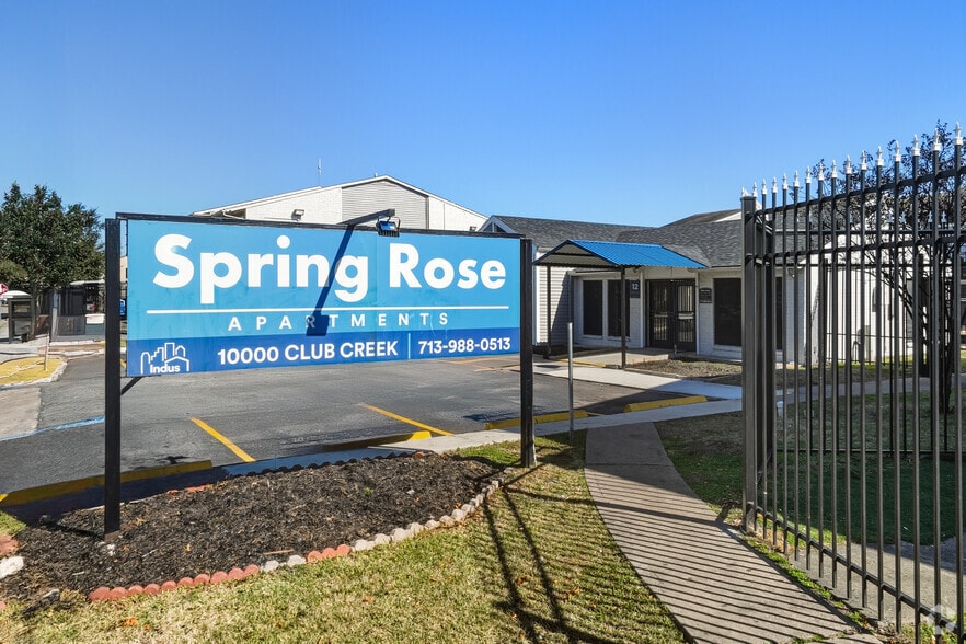 CHOOSE USWe don't just rent apartments. From the moment you walk through the front door, you'll feel the comfort and security that makes our residents happy to call us home. Cutting-edge amenities, meticulously-groomed grounds, and a dedicated staff contribute to a higher standard of living. Convenient shopping, award-winning schools, local museums, and parks are all close at hand, with sponsored activities to develop new hobbies while getting to know your neighbors.​Situated between the Sam Houston Parkway and the Southwest Freeway, Spring Rose Apartments is conveniently located only 14 miles from downtown Houston in the Westwood neighborhood, which offers local restaurants, parks, and other retail businesses. Pappas Bar-B-Q, Finger Licking, and Saltgrass Steak House all have unique menus that residents enjoy, while the Lee Leclear Tennis Center and the Southwest Farmers Market provide recreational activities and a great shopping experience.Amenities include patio/balconies, tiled floors, walk-in closets, pantries, and more. The gated community also has a great playground, two laundry rooms, and a courtesy patrol. Apartments for rent. Apartments near me. Blue Star Certified.
