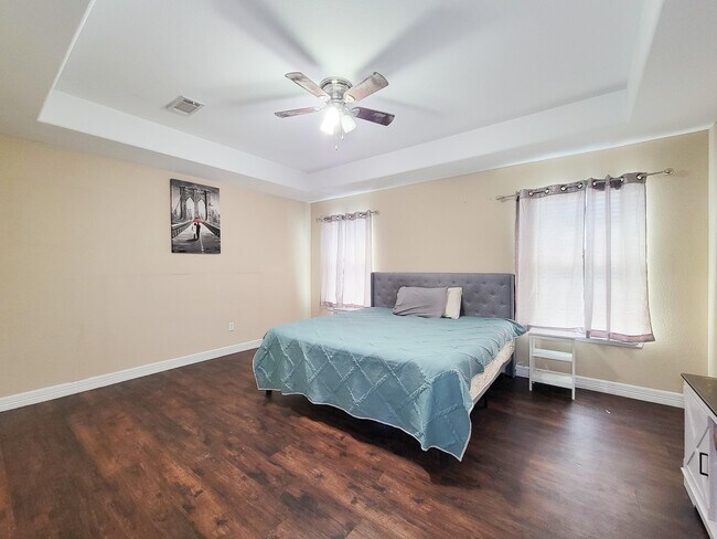 Here's the home you have been looking for! Newer built 3 bedrooms,2 baths,split floor plan,all walk in closets,new paint throughout,2" faux blinds throughout,whole home water shut off system,high ceilings,fenced backyard,covered back patio,NO HOA,and close to everything! Have you food and groceries delivered to your house instead of picking up. Being close to both FM 1960 and FM 2100 makes commuting a breeze! This house offers an abundance of 42" custom kitchen cabinets,natural light throughout,storage closets,large open floor plan from living room through dining and kitchen,private backyard to enjoy,and quick water shut off system in laundry room. You will not want to miss this one! MLS# 51921787