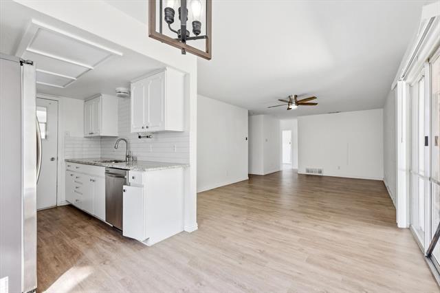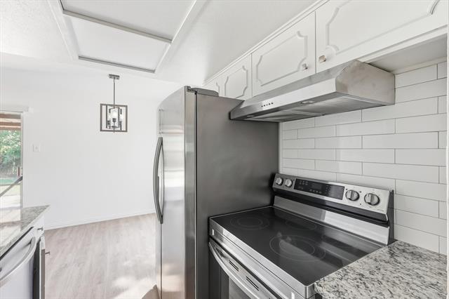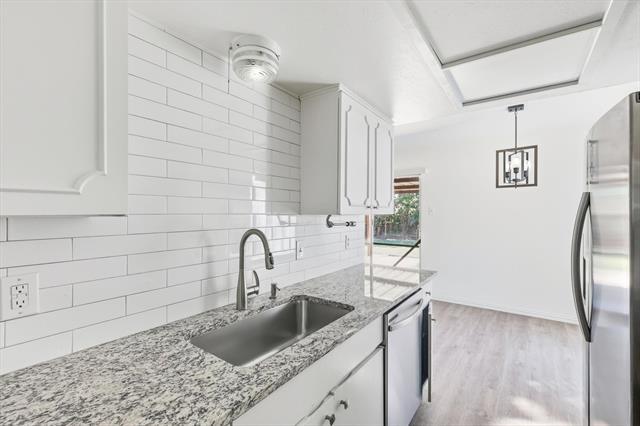 Welcome to this charming mid-century modern single-story home located in the heart of Irving, TX. Nestled on a generous 7,971 sq ft lot, this updated residence offers a blend of style, function, and comfort — ideal for families or professionals seeking space and privacy. Features & Updates: 4 spacious bedrooms and 2 full baths across approx. 1,556 sq ft of thoughtfully designed living space. Modern kitchen with granite countertops, new sink, faucet, oven, dishwasher, and vent hood — perfect for daily meals or entertaining. Updated bathrooms featuring new vanities, mirrors, and lighting. Luxury vinyl plank flooring throughout the home for a sleek, durable, and easy-to-maintain finish. Recently replaced roof and garage door opener for added peace of mind. No shared walls — enjoy privacy and quiet in a detached, single-family setup.