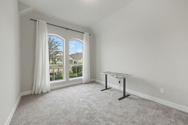 Extended entry with a 12-foot ceiling opens to a spacious kitchen,dining,and family room with 10-foot ceilings throughout. The kitchen offers a walk-in pantry,generous counter space,and a large island with built-in seating—perfect for everyday living and entertaining. The dining area and family room are filled with natural light from a wall of windows. The private primary suite features a 10-foot ceiling and a wall of windows. Double doors lead to the primary bath with dual vanities,a garden tub,separate glass-enclosed shower,and a large walk-in closet with convenient access to the utility room. A guest suite with a private bath enhances this thoughtfully designed one-story layout. Additional highlights include a covered backyard patio,mud room,and a two-car garage. MLS# 953292