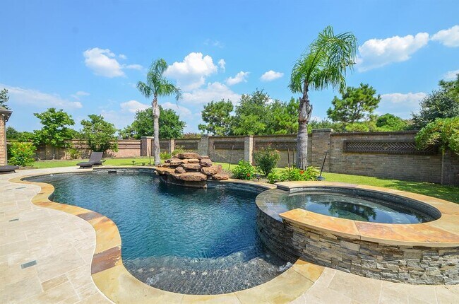 Private Tuscan Inspired Home Extended Hardwoods, Gourmet Island Kitchen, Chef's Gas Cook Top & Double Ovens. Butler Pantry, Wine Chiller, Tropical Blue Lagoon Pool/Spa,surrounded by Relaxing Peaceful Landscaping. Two Bedrooms downstairs with attached baths.Private Master Suite with fireplace and reading area. Custom Hardwood Staircase,Wrought Iron spindles, Huge game room with card room.Study w Built-ins, Spectacular Tiered Home Theater Cul-de-sac lot with a Lake View. See This One First!