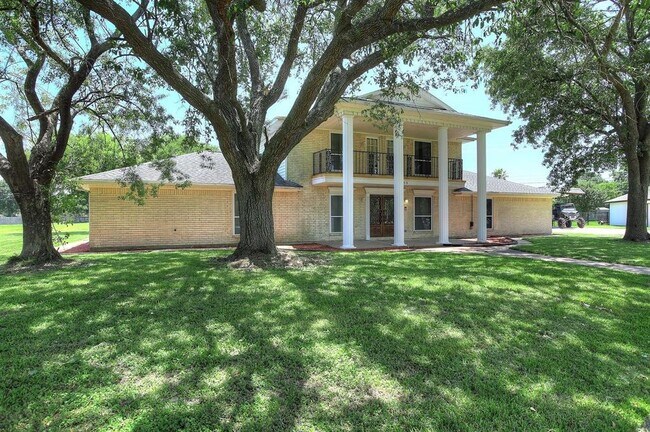 Beautiful colonial style home with oversized lot. Home has so much to offer with formal living, formal dining, generously sized game room downstairs with lots of natural light, spacious den with fireplace and stunning wet bar. Master bedroom downstairs with corner fireplace, master bathroom with separate shower and soaking tub, double sinks, his and her walk in closets with built ins. Secondary game room and additional bedrooms upstairs. Upstairs balcony, covered patio, and additional patio off of downstairs game room. Interior painted recently. New wood laminate flooring recently installed. MUST VIEW to see all the charm and all the space. Detached garage with extra storage area, extra wide drive way. NO BACK Neighbors.