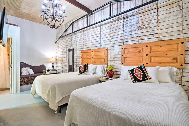 Feel at home in this Laredo studio, offering a comfortable retreat in the heart of South Texas. This single-story home, recently built and furnished in 2022, provides a convenient 1-bathroom layout. This studio features a kitchenette, a Smart TV with Amazon Prime Video, Apple TV, Chromecast, Disney+, Fire TV, and Netflix, and free Wi-Fi. The kitchenette includes a mini fridge, microwave with air fryer, Keurig coffee maker with Italian coffee, wine glasses, and dishware. Additional amenities include Mediterranean style, genuine travertine stone countertop and copper sink, organic cotton white sheets, linens/towels, an A/C split-type ductless system, complimentary toiletries, hangers, and a hair dryer. Guests can also enjoy the shared patio with a table and chairs. Driveway parking is available for one vehicle, and RV/trailer parking is also available. Venture out to experience the historic main streets, galleries, lively entertainment, festivals, shopping, or the unique farmer’s market, all just minutes from the apartment. The homeowner lives on-site in a separate unit, and there are building surveillance cameras monitoring public areas only. Guests must be at least 25 years old to book. No events, parties, or large gatherings are allowed. No pets are allowed. [SI]