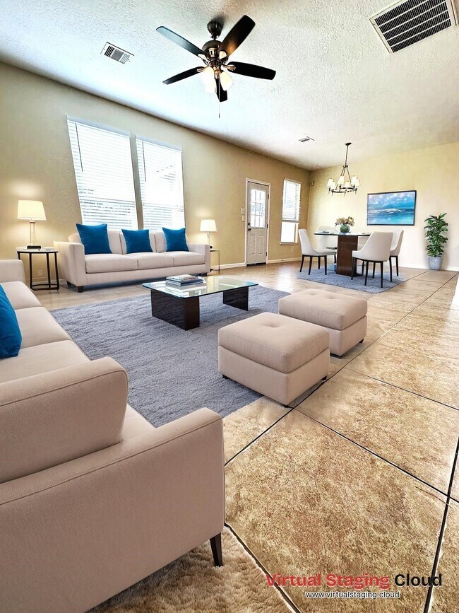 Home 2-story home in Tuscan Lakes! Kitchen features granite countertops,tile flooring,and stainless steel appliances. Plenty of cabinet space as well. The kitchen is open to the living/family area . Master bedroom has a walk-in closet,double sinks,and a glass shower. Large game room upstairs,covered patio. MLS# 18386197