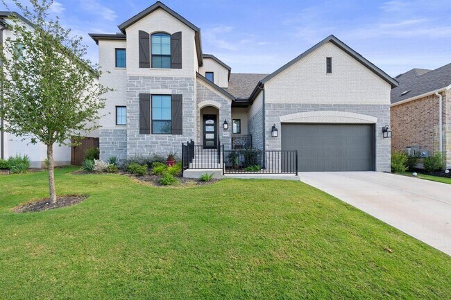 Stunning 2024 built French Provincial-style single-family residence offering 3,727 sq. ft. of thoughtfully designed living space with 5 bedrooms, 4 full bathrooms, and a 3-car tandem garage, located in the highly desirable Leander ISD. This elegant home features a grand foyer with a staircase, French doors, and designer lighting, leading into an open-concept layout with a spacious family room showcasing soaring ceilings, a premium fireplace, and abundant natural light. The gourmet kitchen is equipped with stainless steel appliances, white cabinetry, a large island with sink, breakfast bar seating, and stylish pendant lighting, seamlessly flowing into the dining and breakfast areas—perfect for entertaining. The main-level primary suite offers a luxurious retreat with a spa-inspired bath featuring dual vanities, a freestanding soaking tub, and a marble-finish walk-in shower. Additional highlights include a dedicated study, multiple secondary bedrooms, a game room, and a media/entertainment room, along with open-to-below loft spaces that enhance the home’s airy feel. Enjoy outdoor living in the private fenced backyard with patio and ceiling fan, complemented by a beautiful brick and stone exterior. Zoned to North Elementary, Danielson Middle School, and Glenn High School within Leander ISD, this home combines upscale design, functional living, and an excellent location—ideal for modern family living. MLS ID 8108491