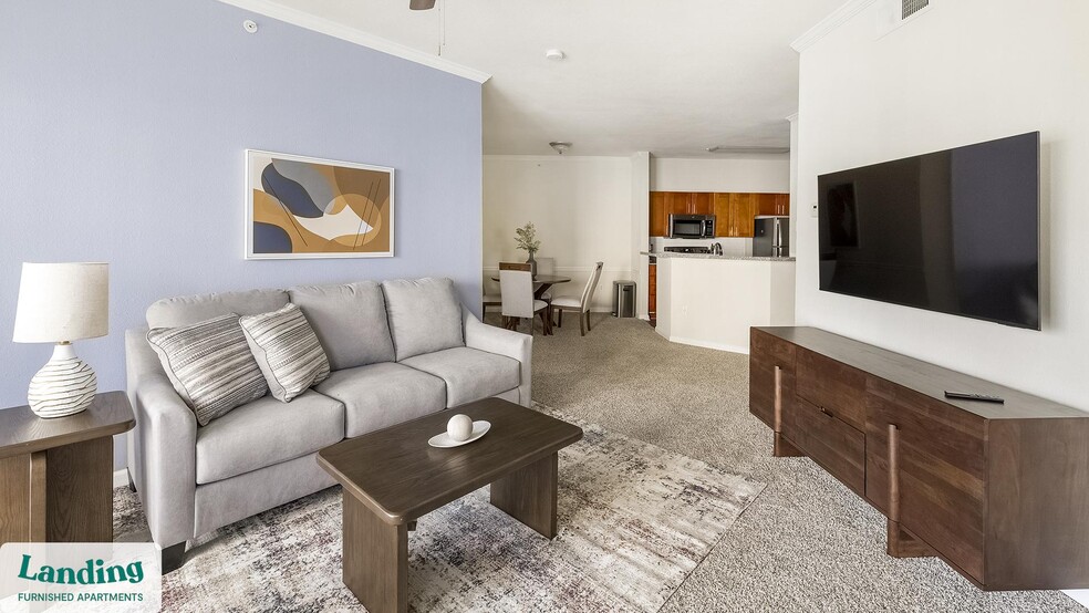 Landing offers flexible lease terms from weeks to months. Please always visit our website or contact us for the latest pricing & availability. Stay longer, save more: 6-Month Minimum base rent: starts at $2570/mo 12-Month Minimum base rent: starts at $2188/mo Landing offers flexible leases across a network of over 35,000 fully-furnished apartments throughout 375+ cities so you can rent on your terms, practically anywhere, and avoid the hassle of paying deposits or application fees. Visit to learn about all the benefits of a Landing membership, see our competitive up-to-date pricing, explore available apartments, take virtual tours, and make reservations online without jumping through traditional rental hoops. Landing's apartments at The View at Lakeside are designed for comfortable, easy living, with the ability to stay as long as you like. Experience living with Landing Every apartment is outfitted with all the modern essentials including: custom-designed furnishings, a fully-equipped kitchen with deluxe stainless steel appliances, a gourmet coffee maker, premium linens, Smart TVs, and incredibly fast, reliable internet for working from home. When you live with Landing, you'll enjoy a hassle-free experience with the added benefit of 24/7 access to our dedicated member experience team. Some of the nitty-gritty: a background check and proof of income are required; we're completely smoke-free; bundled utility packages and pricing vary based on length of stay; pet-friendly options available; listed price reflects a 12-month minimum stay.