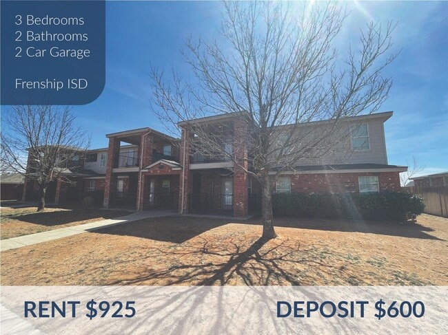 Come walk through this nicely redone 3 bedroom 2 bathroom apartment with a 2 car garage! Brand new vinyl plank flooring thought out, good size bedrooms with open concept kitchen and living area! You may also enjoy a private balcony for your morning brew Small pets considered with $300.00 deposit per pet 3 Roommates with @ $300 deposit each Upstairs unit Upstairs unit in Frenship ISD Legacy Elementary, Terra Vista Middle School