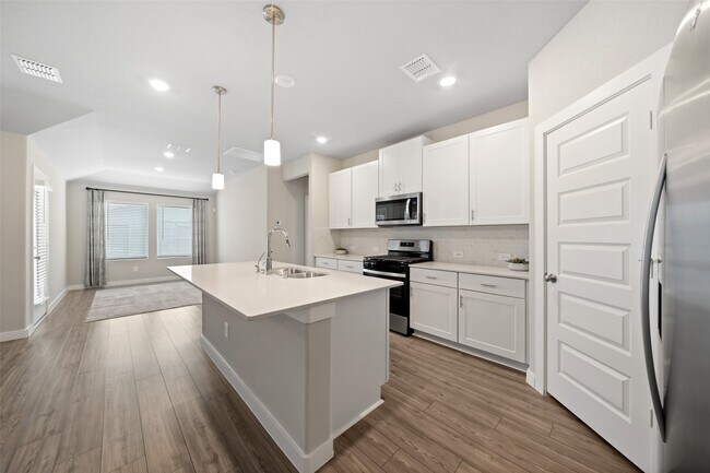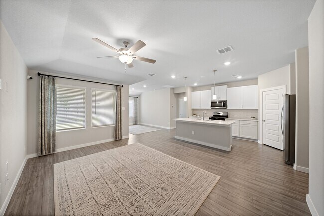 Welcome home to this stunning MODEL home. Loaded with upgrades,this home shows beautifully. Upgrades include designer accent walls,formal drapes throughout,epoxy garage flooring and uniques light fixtures. The fully fenced generous size back yard with covered back patio just off the dining/kitchen area would be a wonderful place to entertain. Island kitchen opens to the family room gives makes it bright it bright and airy. Do not miss this gorgeous home. Schedule your showing today. MLS# 53680527