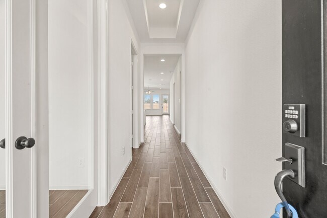 Beautiful Perry Home for lease in the sought-after Meridiana community with access to resort-style amenities including pool,clubhouse,fitness center,recreation courts,and lazy river. This modern home features NO Carpet,an open-concept layout,and a stylish kitchen with white cabinets,backsplash,stainless steel appliances,and island with bar seating. Dedicated home office and formal dining area add flexibility. Spacious primary suite offers dual vanities,soaking tub,separate shower,and walk-in closet. Fully fenced backyard with covered patio. Move-in ready and conveniently located near shopping,dining,and major highways. Minutes away from Medical Center,downtown,NRG,Sugarland and Pearland. You have got to come see this house! MLS# 23490243