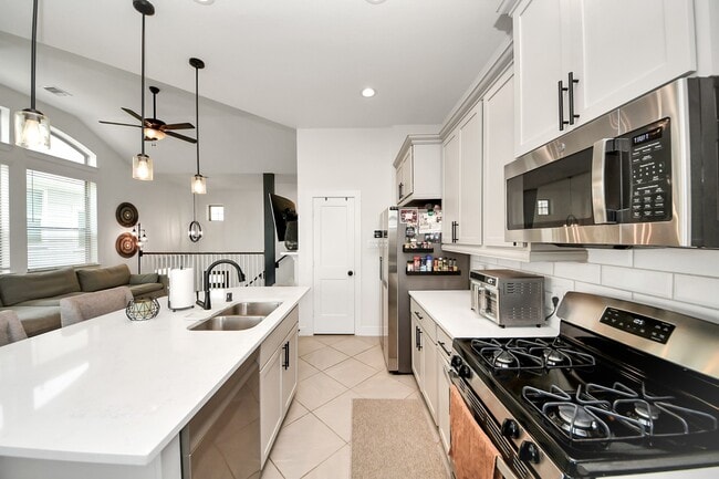 Welcome to 4942 Carranza Court in the highly sought-after Meridiana community of Manvel! This beautifully designed 3-bedroom,2.5-bath townhouse offers modern split-level living with stylish finishes and functional spaces throughout. The upstairs main living area features an open-concept layout with an electric fireplace and direct access to a private balcony. The kitchen overlooks the living room and showcases a large island,quartz countertops,stainless steel appliances and upgraded cabinetry. The spacious primary suite located on the second floor features dual vanities,a separate tub and shower,and a large walk-in closet. Two additional bedrooms and a full bathroom complete the home. Downstairs offers an additional flex space that can be used as a home office,game room,or media room,along with a covered patio and a 2-car garage. Easy access to Highway 288 for convenient commuting to the Texas Medical Center,Downtown Houston,and Pearland Town Center. Call today to tour! MLS# 4664742