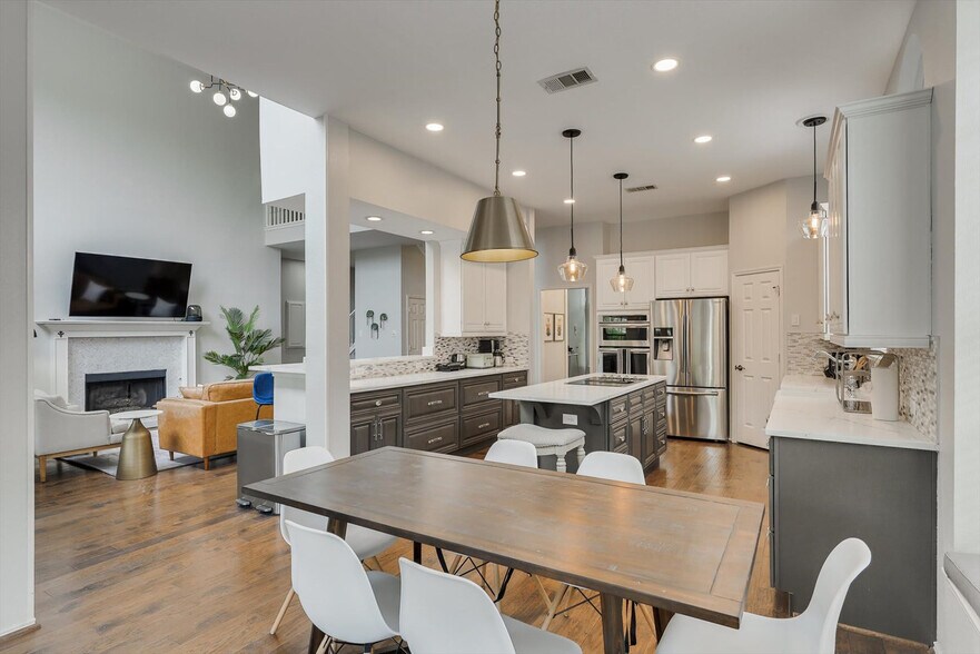 Welcome to this stunning 6-bedroom, 4-bathroom home situated on a huge lot, offering ample space both inside and outside for your large group. Feel at home in luxury with amazing extras like a cinema room and a private pool, making it the perfect accommodation for your dream vacation. This home caters to both short-term and medium-term stays, making it an excellent choice for corporate housing needs. The grand vacation home features a charming exterior with a manicured front lawn, a luxurious interior with high ceilings, modern eclectic furniture, and an open concept layout. The spacious living room with a fireplace and large windows offers a great view of the backyard. Enjoy the cinema room with a comfy couch that opens to a queen-size bed, theater-style chairs, and a foosball table. The gourmet kitchen boasts quartz counters, gorgeous cabinets, and built-in appliances, fully equipped for your culinary adventures. The 6 enormous bedrooms and 4 beautiful bathrooms provide a relaxing atmosphere with modern finishes. Pets are welcome with a non-refundable pet fee of $150 per pet, with a maximum of 2 pets per stay. An additional nightly rate applies for more than 6 guests, with a $29/night fee for each extra guest. The property offers parking for 2 cars in the garage and 2 in the driveway, with no street parking allowed. Nestled in a pristine neighborhood of Mesquite, this home backs onto Samuell Farm, offering trails, lakes, and picnic areas. Conveniently located less than 25 minutes from downtown Dallas and close to DFW Airport, you can explore Mesquite's attractions like the Mesquite Rodeo, Devil’s Bowl Speedway, Mesquite Arts Center, and more, all just under 10 minutes away. Whether interested in sports, history, art, nature, shopping, or Texas cuisine, Mesquite has something for everyone. Smoking of any type is not allowed, with violations subject to a $450 fine plus cleaning costs. Check-in is at 4pm and checkout is at 10am. No parties or large gatherings are allowed, and noise levels are monitored to comply with local ordinances. The spa heating element and jets are inoperable, and the fireplace is gas-operated, to be used at your own risk. Pets should be discussed in advance, and pet cleaning fees apply. Full disclosure of the number of people on the property is required, with security camera verification to comply with local laws. Small gatherings are allowed only upon request and approval in advance. Registration Number: STL- [SI]