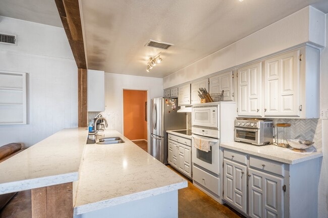 This incredibly cute three-bedroom, two-bath home is just a heartbeat away from Legacy Highl! Featuring a stunning kitchen with stainless steel appliances and an open floor plan, this home is perfect for entertaining. Enjoy plenty of living space, highlighted by a fabulous fireplace. The spacious bedrooms offer comfort and style, while stained concrete floors and abundant natural light create a bright and inviting atmosphere. Step outside to a lush, mature landscape with a covered patio, automatic sprinklers, a storage shed, and a covered RV parking pad. Don't miss this move-in-ready gem!