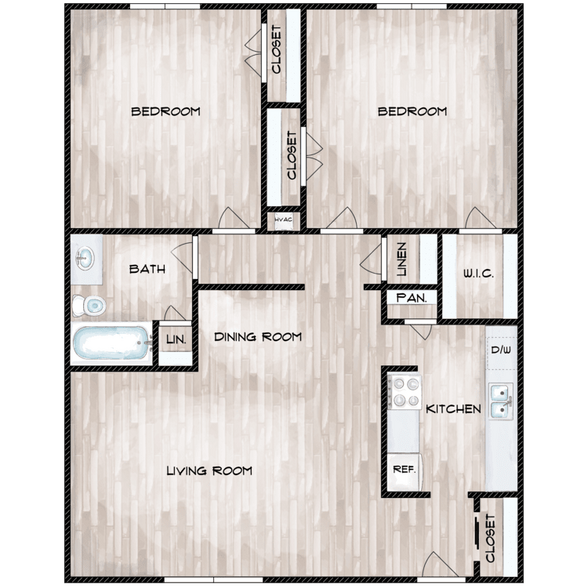 Large 2nd Floor 2 bedroom/1 bath with 979 sq ft of space! Lots of storage. Stainless Steel Appliances, Luxury Vinyl flooring throughout, 2 inch faux wood blinds on all windows. Assigned covered parking, Internet, Streaming TV, WIFI and trash are currently included with no extra fee. Onsite pool. Management and maintenance are top notch!