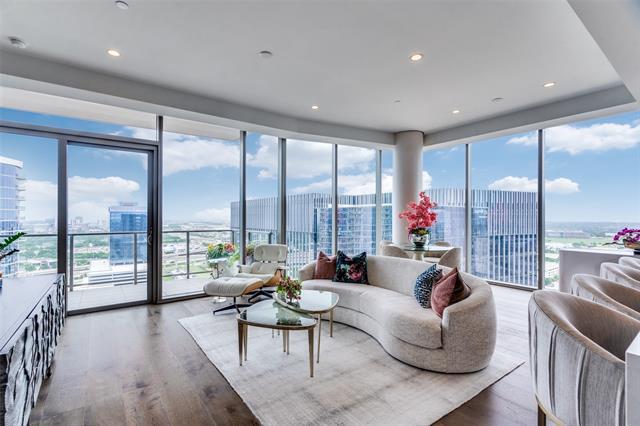 This exquisite 24th-floor condo offers opulence & convenience. Windrose Tower is a luxury 27flr high-rise that defines luxury living with access to the finest amenities. Available 24-7, valet, front desk, and security personnel ensure utmost service. Floor-to-ceiling windows frame a panoramic view and cityscape like a living work of art. 251 sq ft covered balcony w gas FP. Trending modern finishes, open-plan layout. Gourmet kitchen incl. Italian Cantoni cabinetry, exotic quartz CT, Wolf gas cooktop, SubZero BI fridge, 2 SubZero wine fridges. Owner’s Suite boasts views & decadent ensuite bathroom with European marble, floating vanities, freestanding tub, and frameless glass shower. The second Bedrm has ensuite bath & 8'x8' WI closet. Addl amenities include 11’x6’ storage unit, 3 assigned parking spaces, pool, spa with lounge areas, cabana bar with AV & FP, fitness center, steam rooms, golf simulator, Aqua Lounge, Resident’s Park. All that Legacy West has to offer is minutes away!