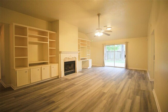 Owner/Agent. Showing starts 10/10. Virtual tour available. Wonderful 3 bed, 2 bath home sits on a quiet cul-de-sac with a oversized backyard, completely remodeled in 2021, no back neighbors & near area pool! NO CARPET. Vinyl plank in all bedrooms and den, tile in kitchen & bathrooms. Completely remodeled kitchen (in 2021) with cabinet, granite countertop, backsplash, sink, faucet, dishwasher and newer range. Water heater replaced in 2021. The cozy den features a gas log fireplace surrounded by beautiful built-ins. Recently added deck and huge backyard great for family entertaining. The master bath is enormous and has a separate shower. Close to the community pool. Less than a mile from the elementary school. Fridge/Washer/Dryer included. Pet is case by case. No section 8.