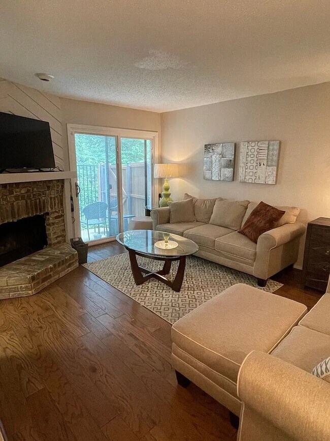Beautiful UNFURNISHED 1 bedroom, 1.5 bath with TWO living areas -- perfect for someone working from home. Updated. Covered reserved parking. Washer and Dryer in unit. Pool. Water, Trash, Sewer, Maintenance included. Lease terms flexible. Minimum of 11 month lease w/flexible extension of lease. Quiet complex with patio located along nice wooded creek.