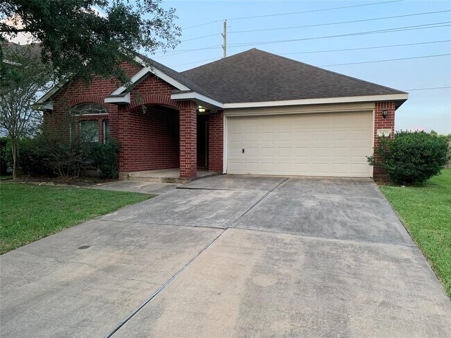 Charming one-story home in a great location with quick access to Hwy 6 and 288 for access to Med Center and Downtown. Home features: tiled entryway, family room, kitchen and bathrooms; and beautiful wood floors in primary bedroom and formal dining area. Beautiful floor plan, offering grand entry, 3 bedroom split plan, spacious kitchen with breakfast bar overlooking large den and seperate dining room. No backdoor neighbors. Secondary rooms have comfy carpet. Home comes with refrigerator, gas range and washer and dryer connections. Cozy patio for relaxing in the backyard. Primary suite bath w/garden tub, separate shower, walk-in closet, linen closet and separate water closet. Enjoy walking on the winding sidewalks and the playing at the beautiful community with pool/recreation area. Come check this out and make this your home today!
