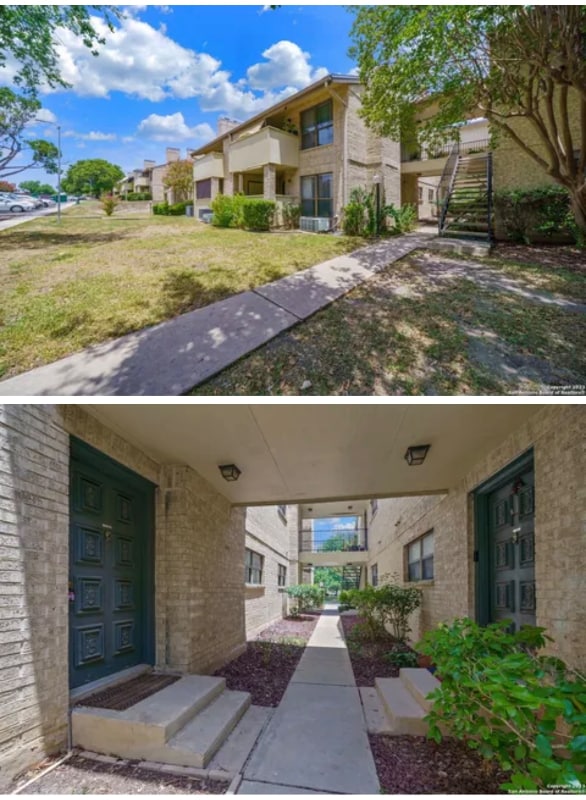 Property Id: 1371826 1 bedroom 1 bath condo, small private front porch, floor to ceiling fireplace and central location. Near medical center, The Rim and major highways. Philhardberger Park is walking distance from condo (1 mile). Alon town shopping center 1.4 miles away.