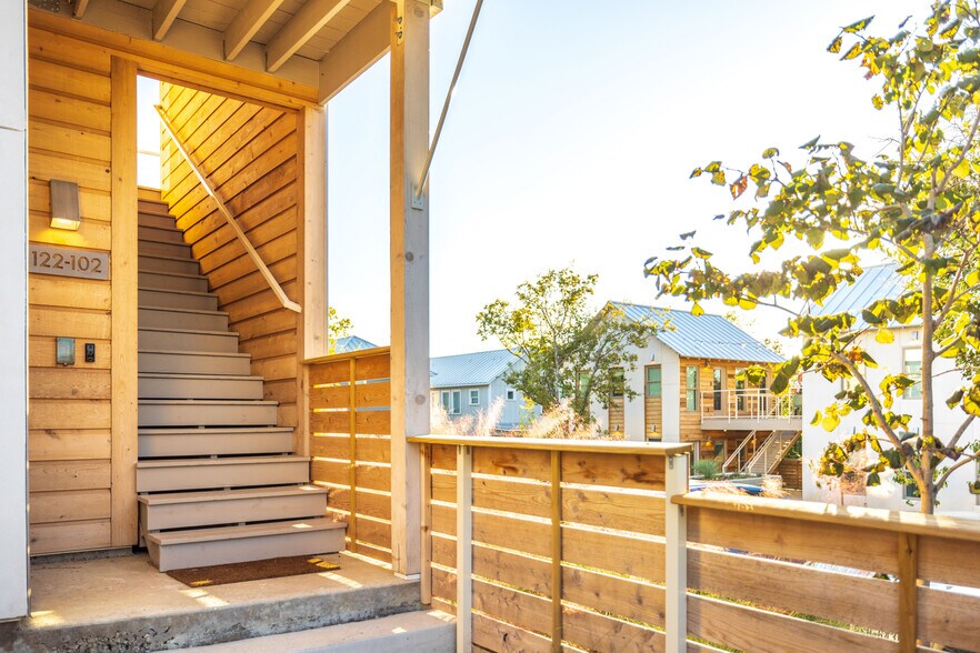 Recently built, award-winning 1 Bed/ 1 Bath apartment, entire upper-level of duplex building. Private front yard, entrance stairwell/ breezeway, 2 private balconies, loft space with sweeping views of downtown San Antonio, and access to generous common spaces. Energy efficient construction detailing and personal solar array. Gas cooking, private laundry in-unit, Nest thermostat, Ring doorbell, disposal, phone charging stations, etc. Courtyard- focused and architecture-driven pocket neighborhood, only 10 units. Great neighbors and community. One reserved off-street parking space.