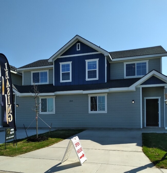 Available Unit Address: 13350 Stadium Cove #101. Lovely three bedroom townhome and includes 3 full bathrooms. The interior has beautiful gray luxury wood plank flooring, ceramic tile in all bathrooms and plush carpeting in the bedrooms. The designer wall paint has monterrey texture throughout and finished with a neutral color. The kitchen consists of crisp white cabinets with crown molding, a large peninsula with granite counter tops, undermount kitchen sink, stainless steel appliances, a kitchen island and an abundantly spacious pantry. The townhome has a private fenced backyard and provides today's energy efficient details. Stadium Pointe Townhomes is in close proximity to highway 1604, UTSA, The Rim and La Cantera. For more details call us at 210-523-RENT. Touring daily by appointment! Photos from previous development.