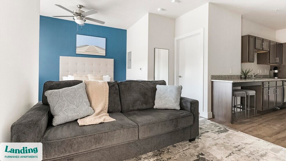 Landing offers flexible lease terms from weeks to months. Please always visit our website or contact us for the latest pricing & availability. Stay longer, save more: 6-Month Minimum base rent: starts at $1155/mo 12-Month Minimum base rent: starts at $1154/mo Landing offers flexible leases across a network of over 35,000 fully-furnished apartments throughout 375+ cities so you can rent on your terms, practically anywhere, and avoid the hassle of paying deposits or application fees. Visit to learn about all the benefits of a Landing membership, see our competitive up-to-date pricing, explore available apartments, take virtual tours, and make reservations online without jumping through traditional rental hoops. Landing's apartments at Esperanza are designed for comfortable, easy living, with the ability to stay as long as you like. Experience living with Landing Every apartment is outfitted with all the modern essentials including: custom-designed furnishings, a fully-equipped kitchen with deluxe stainless steel appliances, a gourmet coffee maker, premium linens, Smart TVs, and incredibly fast, reliable internet for working from home. When you live with Landing, you'll enjoy a hassle-free experience with the added benefit of 24/7 access to our dedicated member experience team. Some of the nitty-gritty: a background check and proof of income are required; we're completely smoke-free; bundled utility packages and pricing vary based on length of stay; pet-friendly options available; listed price reflects a 12-month minimum stay.
