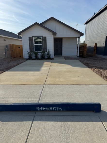 Property Id: 2360375 Be the very first to rent this beautiful, 2 Bedroom 2 Bath Cottage by DR Horton Homes - the Hannah, located in the sought-after Sonora community in San Antonio, TX, combines modern design with quality craftsmanship. This new construction, one-story home offers 2 bedrooms, 2 bathrooms, and 813 square feet of living space, with two all-siding exterior options and a spacious driveway, providing an inviting and practical space instead of a traditional garage. The open concept layout creates a seamless flow between the living room, kitchen, and dining areas, making it perfect for both everyday living and entertaining. The kitchen is equipped with stunning quartz countertops, stainless steel appliances, and stylish shaker-style cabinets, offering both functionality and a sleek, modern design. The main bedroom is a serene retreat, featuring soft, high-quality carpet flooring, a generous walk-in closet, and an ensuite bathroom with quartz countertops and a combined shower and bathtub. Additionally, all bathrooms in the home are outfitted with quartz countertops, ensuring both elegance and durability. The home is built with high-quality James Hardie exterior products, known for their durability and long-lasting performance, ensuring that The Hannah is not only beautiful but built to last. Hard surface flooring is featured in the living room, kitchen, and all wet areas, offering easy maintenance and a modern aesthetic. Patios are also included per plan, adding to the home's appeal and functionality. With these thoughtful features and a prime location, The Hannah is the perfect blend of style, comfort, and practicality in Sonora. Closing and available for move in estimated by March 1, 2026