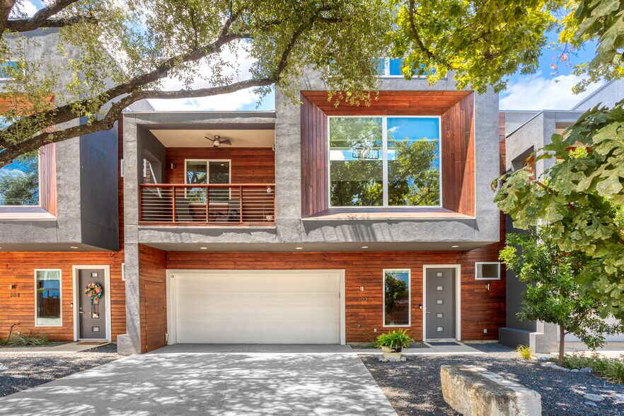 Experience elevated city living in this beautifully designed gated 2-story townhome in the heart of Southtown, just moments from the River Walk and surrounded by the neighborhood's most popular dining and nightlife. This home seamlessly blends modern style with everyday comfort, featuring an airy open-concept layout, a flexible bonus space ideal for a home office or gym, and a luxurious main-level primary suite complete with a custom closet and spa-like walk-in shower. The kitchen is a standout centerpiece with sleek quartz countertops, black stainless steel appliances, custom cabinetry, and an oversized island with smart dual-sided storage-perfect for entertaining or daily living. Sunlight pours in through expansive windows, highlighting the clean, contemporary feel enhanced by a no-carpet interior. Upstairs, two spacious bedrooms and a full bath provide privacy and versatility for guests or additional living space. Step outside to unwind on your covered terrace or enjoy the beautifully xeriscaped yards designed for effortless maintenance. With a rare 2-car garage, additional driveway parking, energy-saving solar panels, and a newer 2017 build, this home delivers both convenience and sophistication in one of the city's most sought-after locations.