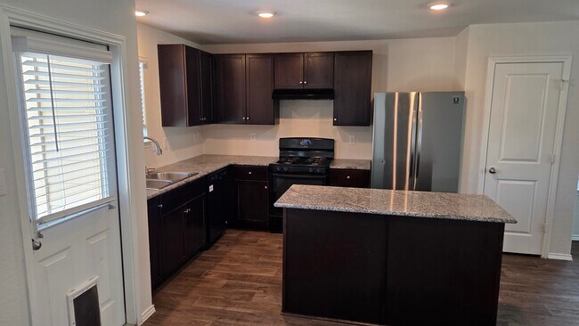 Freshly painted two-story home 15 minutes from Lackland Air Force Base and Culebra Rd., but outside city limits. Being outside city limits the neighborhood does not have city trash/recycle pickup but I will continue to keep the contract I have for whoever moves in. Quiet neighborhood with friendly neighbors. Single car garage has been fitted with shelves and pegboard. Most appliances included (fridge, washer, dryer, microwave, water softener, lawn mower etc.). Stone doghouse in the backyard with doggy door for mid-sized pups to access the yard. Two pantries and Master Bedroom has it's own in-room bathroom. Access to community pool and playground. All bedrooms have walk-in closets.