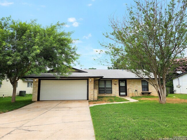 This charming single story, ranch style, 3-bedroom, 2-bath home with 2-car garage is located in the sought after neighborhood of Rainbow Hills, with close and convenient proximity to Lackland Air Force Base, Hwy 151, Hwy 90 and 410. Upon entering the home, you'll notice the spacious and versatile layout, providing ample room for comfortable living. The home features an open-concept floor plan with a large living/dining area with huge windows allowing abundant natural light that fills the space. Two spacious bedrooms with large closets have access to a full bath, perfect for guests, or converting one into an office space. The Primary bedroom includes a large walk-in closet and custom bathroom including a tile vaulted, full-standing shower and single vanity. The quaint, yet cozy kitchen includes well maintained granite countertops and tile flooring, a bar overlooking the living/dining areas and gives way to access the fully functional two car garage, with a custom-built workbench and an abundance of shelving/storage space. One standout feature of this property are the French doors that open up to the oversized, fenced-in backyard, sizeable stone patio and additional storage shed offering endless possibilities for outdoor recreation and private entertaining. This home provides easy access to downtown SA, as well as a multitude of shopping, dining and other retail areas. It is within walking distance to nearby schools and 3 blocks away from a fantastic community park with a community center, jungle gym, 2 basketball courts, soccer field, 2 baseball fields, a dog park and walking trails that include covered picnic areas and a large pavilion.