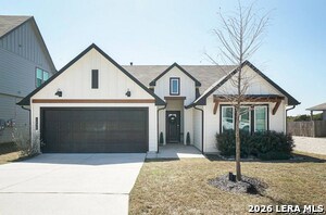Beautifully maintained home in North San Antonio featuring an open-concept layout, modern kitchen with white cabinetry, stainless steel appliances, and a large island perfect for entertaining. Spacious living area with abundant natural light and well-sized bedrooms throughout. Enjoy great curb appeal with a modern farmhouse exterior, two-car garage, and private yard. Conveniently located near major highways, shopping, dining, and zoned to a highly sought-after school district. Move in ready! Schedule your showing today.