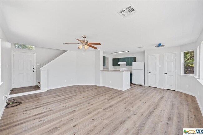 **Newly Renovated** Large 3 bedroom duplex available for immediate move-in. New flooring throughout the duplex with new paint. Each bathroom has brand new vanity and fixtures with new trim and hardware throughout the duplex. Each bedroom has an attached bathroom, all bedrooms are upstairs with living/kitchen/dining room down. Unit includes W/D and fridge and the yard is taken care of by the landlord. Close to TXST and on the bus route, perfect opportunity to get out of an apartment and into something bigger! Private fenced yard out back and attached 2 car garage. Call listing agent for more info or schedule through showing time.