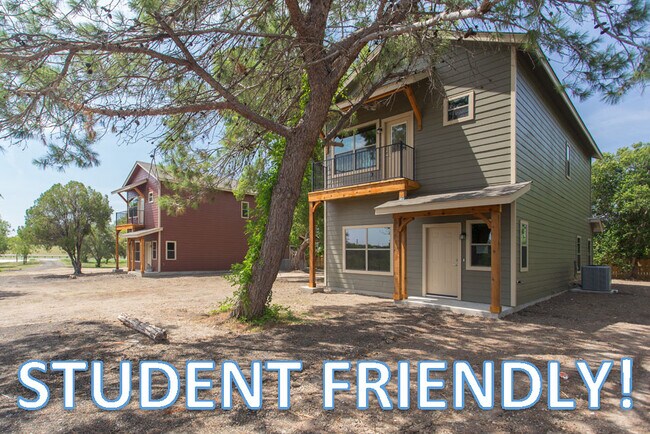 Ranch Style student housing for Texas State University students. Large fenced yards. Pet friendly. Plenty of parking. Spring fed stock fishing pond. Rent covers water (up to 5000 gallons monthly), lawn care, internet (940 MBPS Download) Located behind outlet malls.