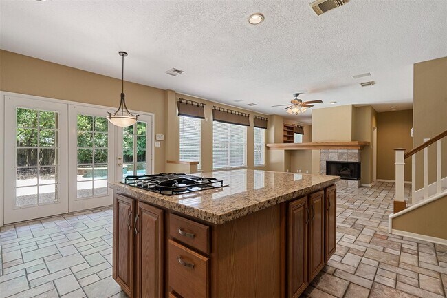 Beautiful updated two story home located in The Woodlands Village of Alden Bridge. Great location across from the park,walking distance to Buckalew Elementary and close to dining,shopping,schools,parks,medical,and all of the amenities The Woodlands has to offer. Beautifully landscaped yard. The first floor features hardwood flooring,formal dining room,formal living room,large family room w/ fireplace,breakfast room,and island kitchen w/ stainless & black appliances open to family room. The upstairs features a large master bedroom with sitting area,fireplace,& private screened in porch overlooking the pool,three generous sized secondary bedrooms & bathroom,and game room. Huge backyard w/ sparkling swimming pool & spa and lots of mature landscaping for privacy! Two car attached garage. Kitchen refrigerator,washer,dryer and pool maintenance included. A must see. Schedule your showing today! MLS# 17869842