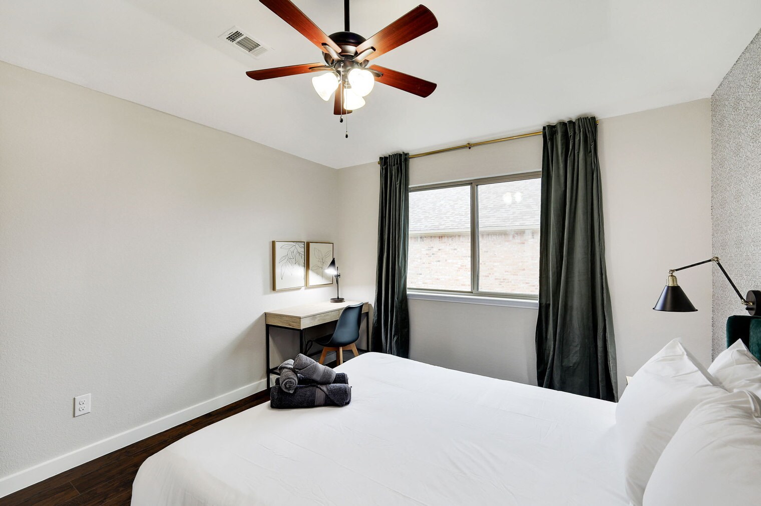 Stop scrolling, this is the one! This sprawling bungalow vacation home in Waxahachie offers a spacious open-concept layout, an impressive chef’s kitchen, and an outdoor swimming pool. With upgrades throughout the home, you won’t regret booking this place for your next trip. With 5 bedrooms and 2 bathrooms, this home is perfect for accommodating large groups. Welcome to your home away from home! Located in the prized neighborhood of Indian Hills, this home is conveniently situated minutes from attractions. With 5 bedrooms and 2 bathrooms, there’s plenty of space to accommodate parties of up to 10. This vacation home includes upgrades such as a chef’s kitchen, soaker tub, and double garage, and also features an outdoor swimming pool, grill, and patio. The home caters to both short-term and medium-term stays, making it an excellent choice for corporate housing needs. The fully equipped kitchen includes stainless steel appliances, cooking essentials, place settings, and dining utensils, along with a kitchen island and breakfast bar. The sleek living room offers a modern, comfortable environment with plenty of seating, a flat-screen TV, and high-speed Wi-Fi. The dedicated dining area features a dinner table with seating for 8 and bar-style seating at the kitchen bar. Free parking is available to guests with plenty of space in the double garage and on the driveway. There is a laundry room with a washer and dryer available for use. We welcome house-trained pets with a non-refundable pet fee of $150 per pet, with a maximum of 2 pets per stay. An additional nightly rate applies for more than 6 guests, with a $29/night fee for each additional guest. Conveniently located a stone's throw from the Dallas-Fort Worth Metroplex, Waxahachie is a vibrant, authentic small-town Texas community. Known as the “Crape Myrtle Capital of Texas,” the city’s historic streets are lined with beautiful pink crape myrtles in full bloom each summer. Highlights include Railyard Park, the Historic Downtown District, and the Ellis County African American Hall of Fame. For those interested in exploring the Dallas-Fort Worth area, attractions like Dogwood Canyon Audubon Center and Grand Prairie Premium Outlets are within a short drive. Smoking of any type is not allowed, with violations subject to a $450 fine plus the cost to clean, deodorize, and repair damages. Check-in is at 4pm and checkout is at 10am. No parties or events are allowed, and only registered guests are permitted. Pet arrangements should be discussed in advance, and pets are asked to keep off beds and furniture. Noise levels are monitored to comply with local ordinances, and a noise alert device is installed to measure decibels. The fireplace is gas-operated and should not be left unattended. Guests are welcome to use streaming apps on smart TVs with personal accounts. The home offers high-speed Wi-Fi, making it remote work-friendly. Registration Number: STR-008130 [SI]