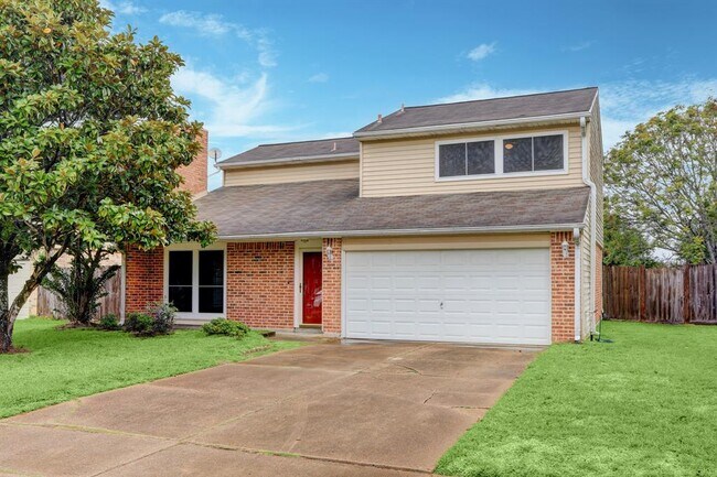 Red front door welcomes all guests. Family room has sloped high ceiling, laminate flooring & wood burning fireplace with gas starter. Formal dining also features a wet bar for entertaining.Adjoining kitchen has easy clean glass top range & microwave. Casual dining area has french doors that open to lovely covered deck with café lights, expanding area the entertaining outdoors.Back yard has plenty of green space, corn hole toss anyone? Large storage shed. Convenient In-house laundry room has built in shelving. All bedrooms have ceiling fans. Both full baths have dual sinks, saving time during morning rush hour. Garage has additional lighting for any project you may have. There is a private community pool. Fees for this year-round indoor pool at tenant’s expense. Zoned to sought after CCISD schools, Easy access to new HEB, Baybrook restaurants, entertainment, and shopping.Easy commutes to NASA, UHCL, Galveston.Per owner- NEVER FLOODED, Clear Lake Area.Tenant Selection criteria available.