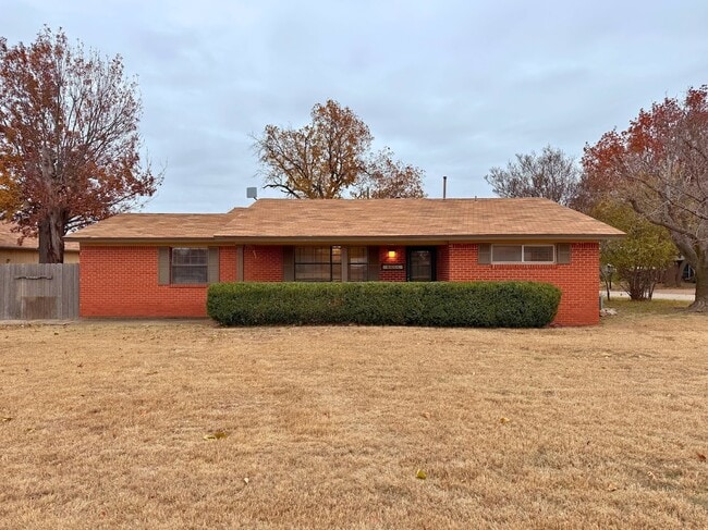 3 Bed 1 Bath home featuring an oversized 2 car garage with a workshop, on an almost 1/2 acre corner lot! Inside, enjoy the central heat & air, living room w/built-in, fully equipped kitchen, and giant isolated master bedroom. All bedrooms feature dual closets. The bathroom has built-in cabinetry. Washer/dryer connections in kitchen. Backyard is massive with a storm shelter, and a secure fence with a wide gate. Pets on a case-by-case basis with a $250 fee per pet. Apply today at