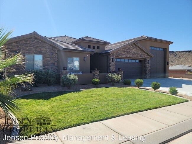 - Beautiful 6 Bedroom Home in Dixie Springs-Walk out Basement - 6 Bedroom 3.5 Bathroom, 3 Car/RV Garage Custom in every way - don't miss this one. Beautiful mountain views, 4 bedrooms on main. 10 minutes to fishing and boating, ride atvs from the house - Sand Hollow less than 10 minutes. Under 15 minutes to 8 golf courses. Custom wood plank gray laminate, custom granite, stainless appliances, and a composite kitchen sink. Plant shelves, contemporary white soft close cabinets, white doors and trim with agreeable gray walls, modern electric LED fireplace, ORB ceil fans, brushed nickel plumb fixtures, lighted ceiling tray in family room. R50 ceil insulation, closet organizers, tumbled Rock shower accents, full block walls, 15' x 50' (14' door) RV and toy garage with 50 amp circuit and another 40' RV or boat, Insulated garage doors, basement kitchenette, big storage room in basement. Immediate occupancy. Contact Jensen Property Management with any questions or for additional information. , email 12 Month Lease. Small Dog Negotiable +$100 Lease Initiation Fee No Cats Allowed (RLNE7535898) Pet policies: Small Dogs Allowed, No Cats Allowed.