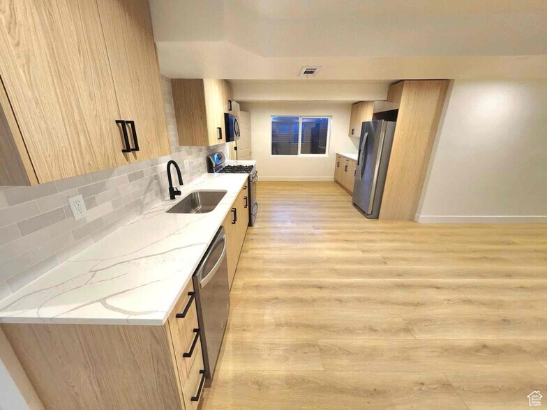 2 Bedrooms, Full Kitchen, Full Bath, and Large Living Space. New quality remodel (2025), Natural light. Separate entrance with staircase. Functional and cozy fireplace. New Appliances (Dec. 2024) are included free of charge.