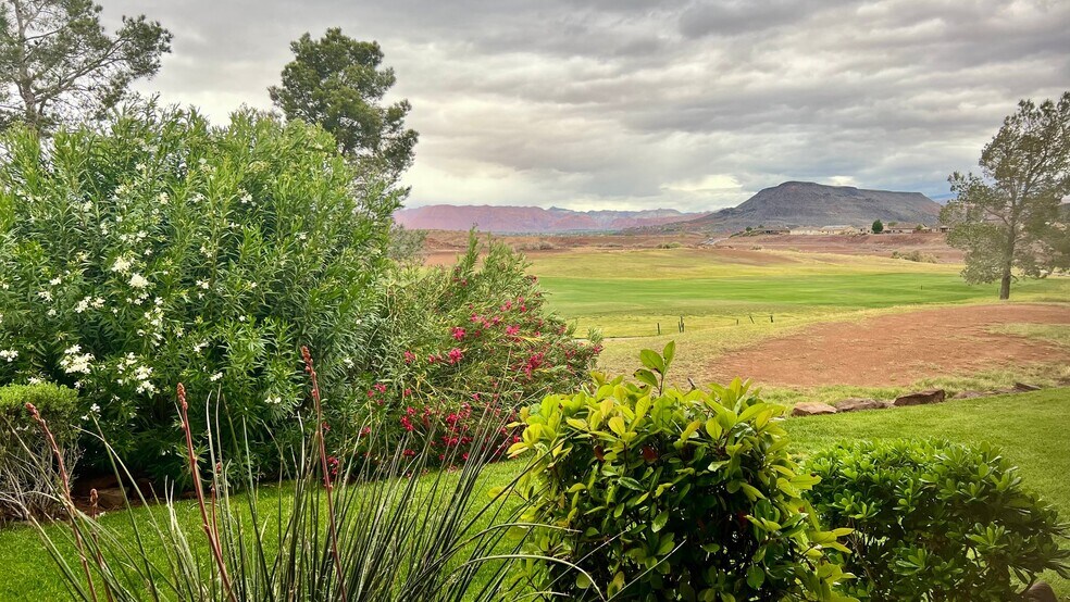 This fully firnished home is located on the 15th hole of Southgate Golf Course and unobstucted views of Snow Canyon. The main level has open floor plan with updated kitchen, dining room, and living room with double sided fireplace to main bedroom. Upper balcony access from living room and main bedroom. Large bedroom suite with walk-in closet, double vanity, soaking tub and shower. Lower level has large family room that walks out to lawn & covered patio, 3 bedrooms and 1 bath. Oversized 3 car garage Located in HOA with indoor/outdoor pool, pickleball courts, & game room. Minimum 6 month lease. Tenant pays utilities. Credit & Background check required. Must complete a Prescreen through Turbo Tenant. Owner /Agent