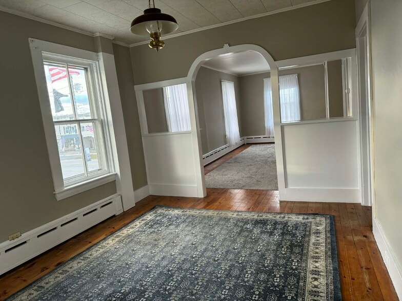 This newly renovated property at 115 Main St features 2 bedrooms and 1 bathroom within a total of 1,000 square feet. The natural light filled living and dining rooms offer ample space for relaxation, while the bedrooms provide comfortable accommodations. The bathroom is equipped with standard fixtures for convenience. The kitchen includes a dishwasher, enhancing functionality for meal preparation. Additionally, a washer and dryer are included for in-unit laundry. The exterior is well-maintained, providing a welcoming entrance.
