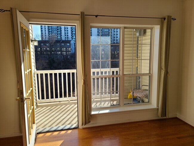 Beautiful 1BR/1BA for rent, conveniently located at I-395 and King Street-West, minutes from downtown Shirlington. Lovely view from quiet, peaceful balcony; spacious and bright; fully equipped kitchen plus w/d in unit; in safe, friendly garden style condo complex. Great location with easy proximity to downtown DC, Pentagon, Arlington, Mark Center business complex. Includes access to outdoor pool (seasonal), 24-hour fitness center, club room, one reserved parking space and one visitor parking space (covered garage), water, and trash service. Renters pay for own electric, gas, cable/internet/phone. Security deposit equal to monthly rent amount is required. Application requirements: Please provide most recent rental history and property point of contact, plus two personal references. Recent credit report required. Condo Features: • 2nd floor condo, with elevator access directly from above ground parking garage • 9 ft. ceilings throughout, plus crown molding in living room/hallway • Hardwood laminate throughout • Fully equipped kitchen (refrigerator, electric range/oven, dishwasher, microwave, disposal), with plenty of cabinet and counter space • Large bathroom leading into a custom built, walk-in closet, with adjustable racks and storage; additional hall closet storage • Full size washer and dryer in unit • Completely private balcony, quiet with a lovely and peaceful view of large pond and wooded area • Large windows and lots of light in both living room and bedroom; ceiling fan in bedroom • Individual, self-controlled A/C and Heat • Dedicated, covered garage parking space and visitor parking spaces in garage under building, plus street parking • Condo rents unfurnished • Cats and small dogs allowed (size of dog as per Condominium bylaws). Additional pet deposit and rental adjustment will apply. • No smoking Location: This condo is very conveniently located in Alexandria off of King St. (Route 7) and 395. Easy and quick access to downtown! • 1 min drive to nearby shopping center (grocery, drug store, Starbucks, etc.) • 0.8 miles to NoVa Community College-Alexandria Campus • 1.4 miles to Mark Center • 5.3 miles to Pentagon, or easily accessible via Metro Bus (bus stop directly in front of the building for bus to Pentagon metro station (2 stops - 20 mins) • 3.6 miles to King Street metro station in Old Town, Alexandria • Multiple DASH and Metro Bus stops within easy walking distance Community Amenities: The Palazzo at Park Center is a garden-style condominium. A safe, friendly community conveniently located just minutes from downtown. Security cameras in well-lit parking garage and around community. Secure access to clubhouse, pool and 24-hour fitness center with new, state of the art equipment/TVs. Clubhouse community/party room with TV, bar, and wireless access. Walking trail behind building.