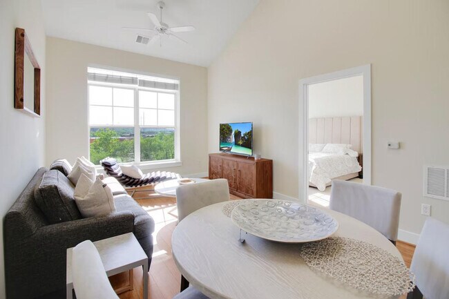 Feel at home in this stylish, open-concept loft near Old Town Alexandria. This apartment features two spacious bedrooms and a full bathroom. This apartment features a full kitchen equipped with stainless steel appliances, cookware, dishware, and essentials like a coffee maker and toaster. A dedicated dining area with a table and chairs is perfect for enjoying meals or getting some work done. The comfortable living space includes a smart TV and high-speed Wi-Fi. An in-unit washer and dryer are available for your laundry needs. Building amenities include a pool, gym, lounge with a pool table, shared work areas, and mail and trash rooms. Parking is available in the building’s garage for an additional fee, and metered street parking is available nearby. Pets are welcome for a fee. Conveniently located near shops, restaurants, and public transportation, this apartment offers easy access to Richmond Hwy and is within walking distance of the Eisenhower metro station, Strategos, Waterfront Park, and Old Town Alexandria. Parking needs to be arranged in advance. A refundable deposit is required if extra keys are needed. [SI]