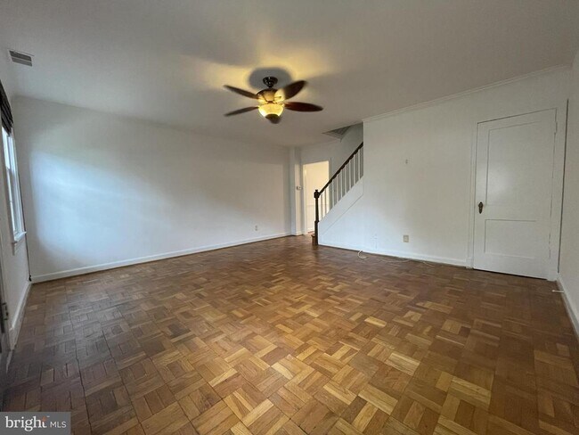 One of the larger 2-bedroom models in Arlington Village, offering 1,086 square feet across two levels. Classic all-brick exterior in a charming courtyard setting with mature landscaping. Hardwood flooring spans both levels, paired with crown molding and a neutral color palette. The updated kitchen includes white cabinetry, granite countertops, stainless steel appliances, a gas range, track lighting, and a breakfast bar. A rear door provides access to a private deck and backyard area. Upper level includes two well-sized bedrooms with hardwood flooring and ceiling fans, along with a full bath. The home includes an In-unit stacked washer and dryer and additional storage space. Arlington Village amenities include a large outdoor pool, tennis courts, bike storage, wooded walking paths, landscaped courtyards, and ample resident parking. Conveniently located and walkable to grocery stores, dining, shopping, and Metro Area Transit.